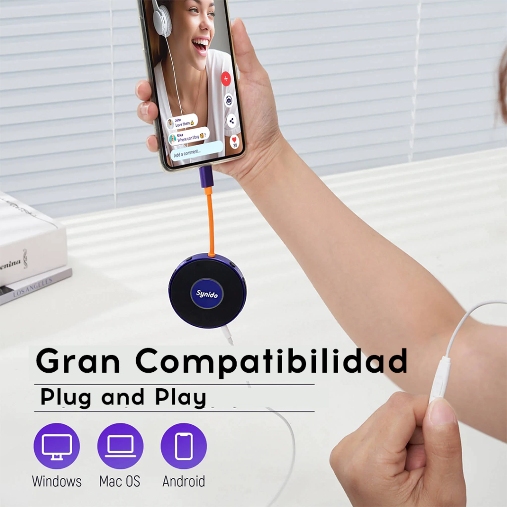 Gracias a su interfaz USB-C, el Synido Live Dock Live 10 te permite conectar tu dispositivo móvil o computadora mientras transmites en vivo, sin preocuparte por la batería. Además, puedes cargar tu teléfono durante la transmisión, asegurando un rendimiento continuo.